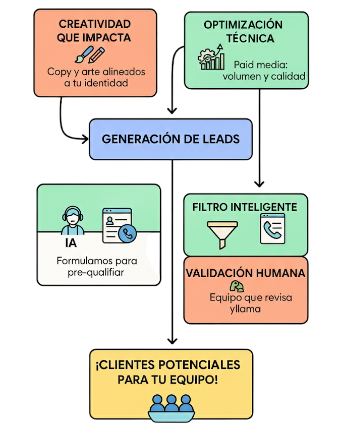 Un equipo especializado revisa y llama a cada lead → solo pasan clientes en potencia a tu equipo.